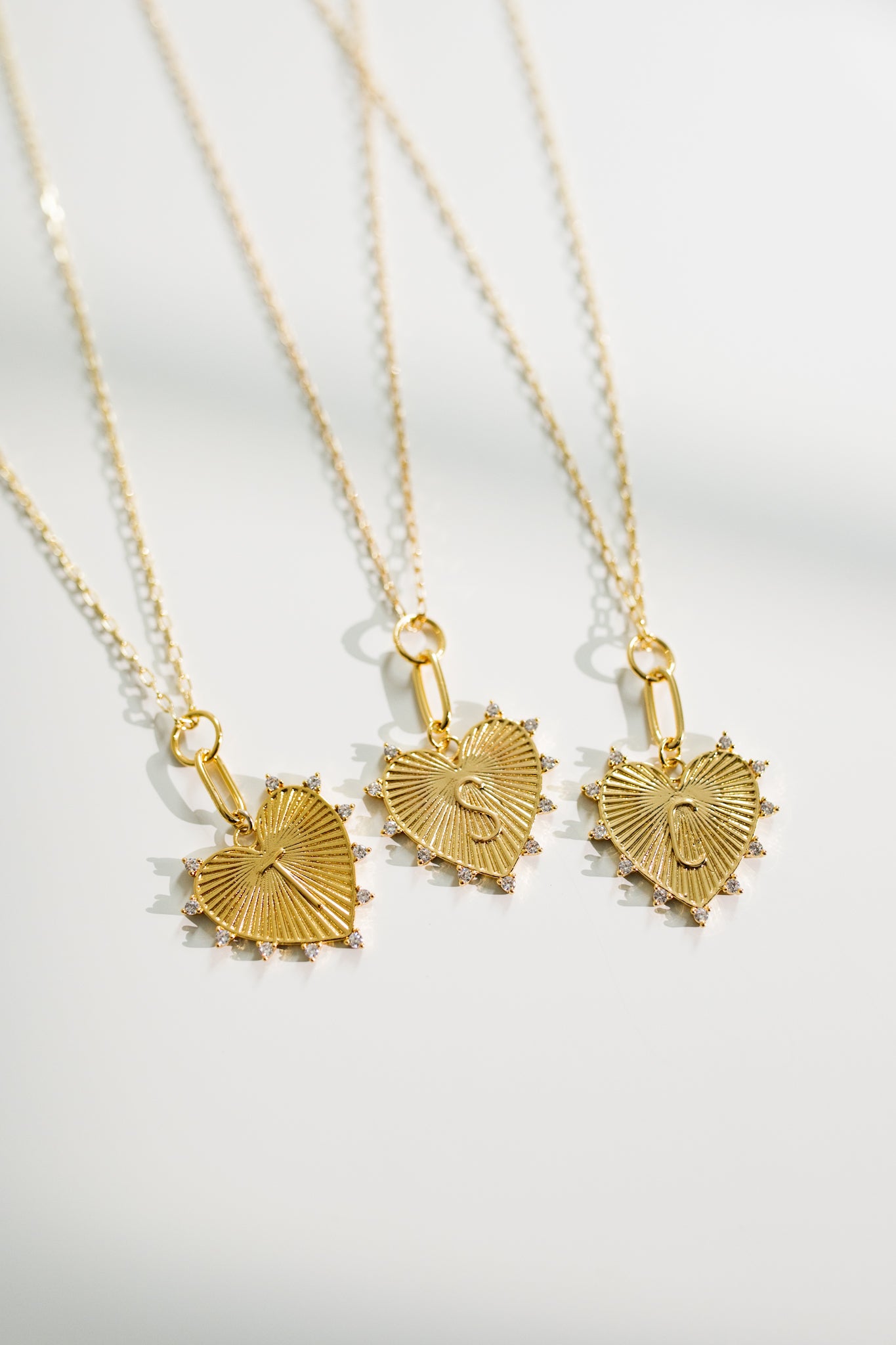 Introducing our Initial Heart Necklace.The delicate link chain features a heart charm adorned with sparkling stones, and a simple font initial. Perfect for any occasion, this necklace adds a touch of elegance to your everyday look.